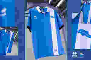 Elegance and identity combine to create the third kit. A light blue shirt features a wide vertical white stripe bearing the image of a dolphin, the club's symbol. The white polo collar with dark blue trims further highlights the essential but very refined style of the shirt.